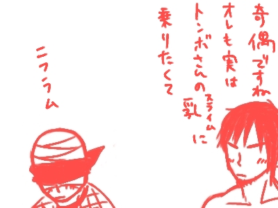 「トンボさんは服の下にスライムを飼ってる」とスラりんたちに教えたちくわ。
